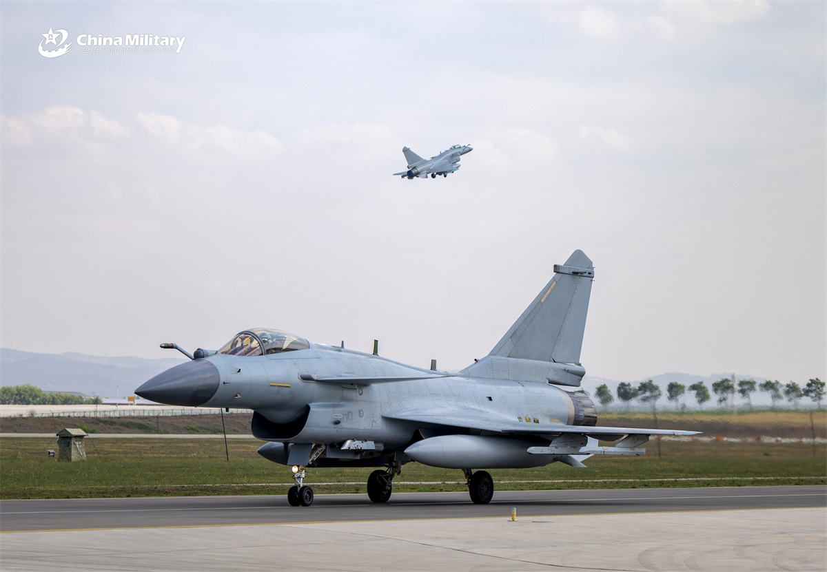 J-10 fighter jets attached to an aviation brigade of the air force under the Chinese PLA Southern Theater Command take off in succession during a day-and-night flight training exercise. (eng.chinamil.com.cn/Shang Jieyan)