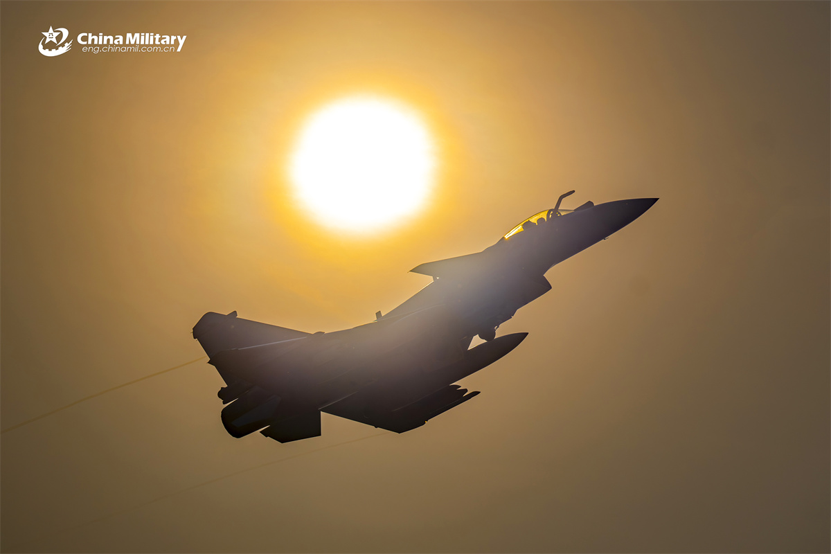 A J-10 fighter jet attached to an aviation brigade of the air force under the Chinese PLA Southern Theater Command soars into the sky during a day-and-night flight training exercise. (eng.chinamil.com.cn/Shang Jieyan)