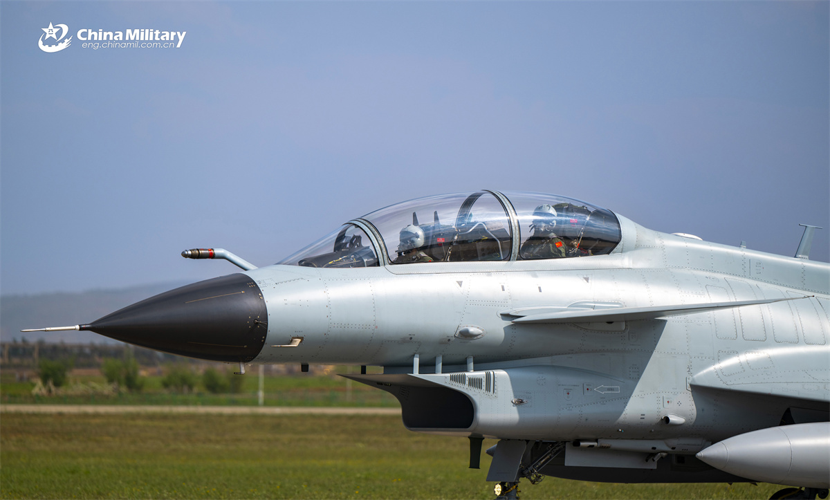 A J-10 fighter jet attached to an aviation brigade of the air force under the Chinese PLA Southern Theater Command taxis on the runway during a day-and-night flight training exercise. (eng.chinamil.com.cn/Shang Jieyan)