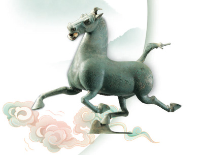 Photo shows a bronze horse statue, popularly known as "Bronze Galloping Horse Treading on a Flying Swallow," at the Gansu Provincial Museum in northwest China's Gansu Province. (Photo courtesy of the Gansu Provincial Museum)