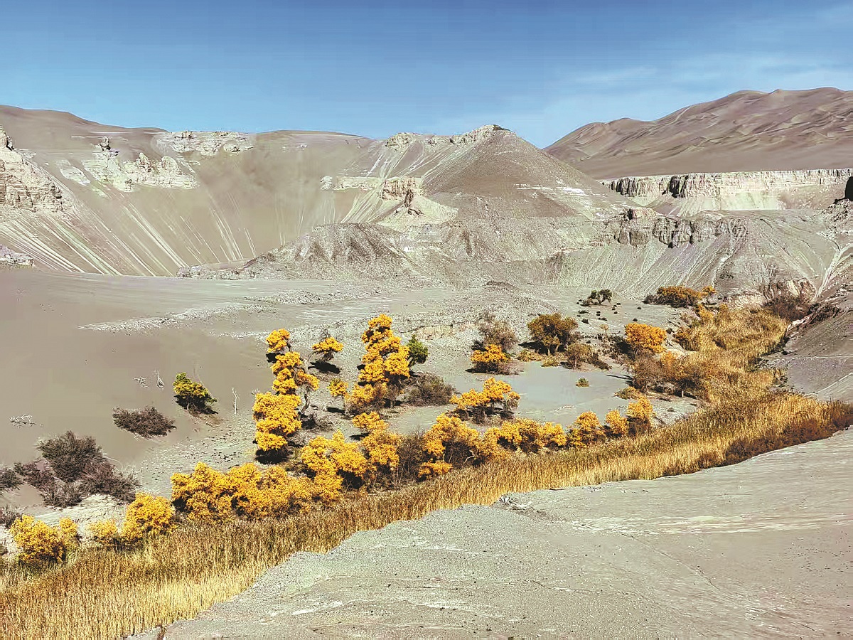 Poplar trees bring vibrancy to the desert at the Dunhuang Xihu Nature Reserve, Gansu province. WU XINGDONG/FOR CHINA DAILY