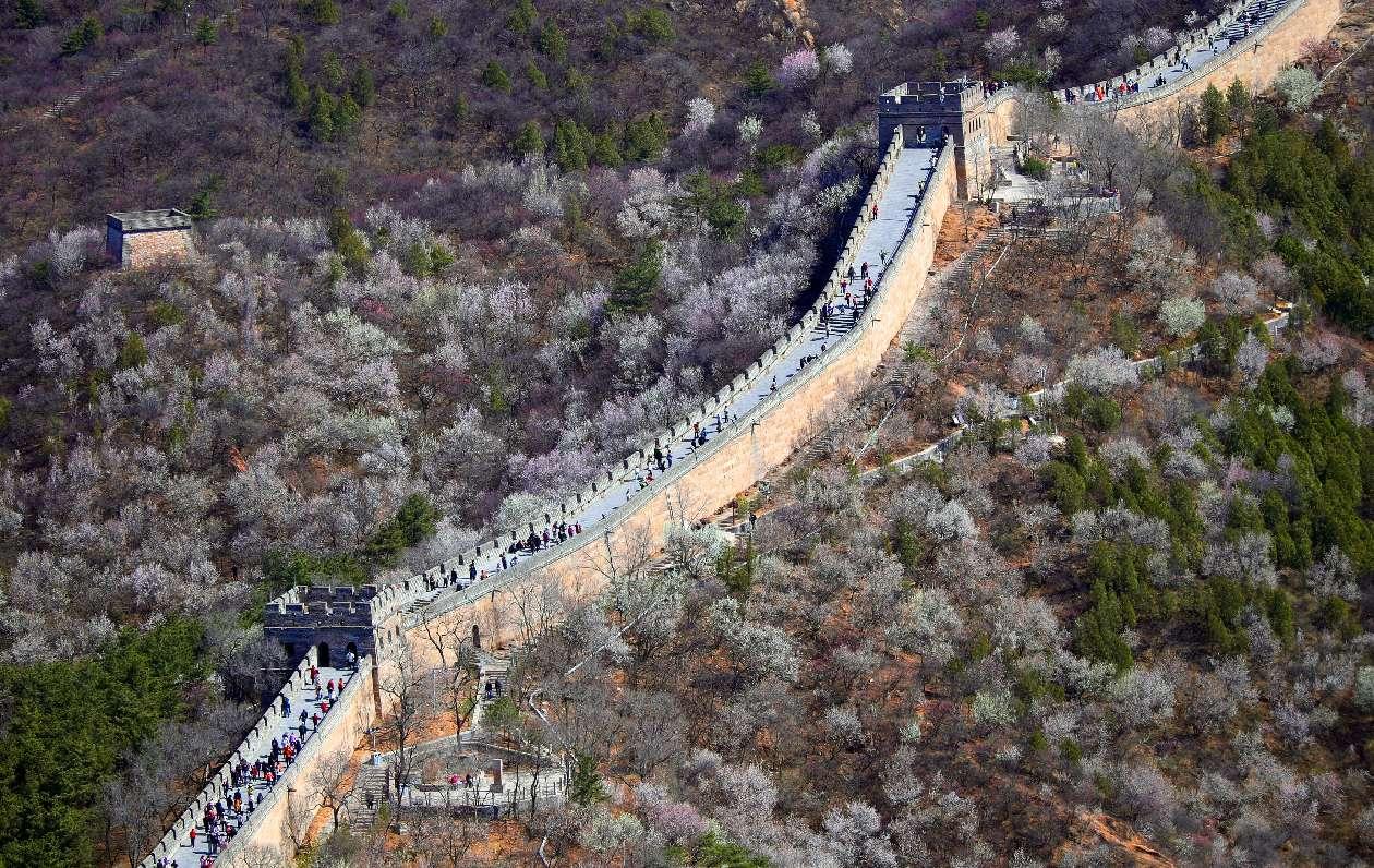 Photo taken on April 2, 2025 shows tourists visiting the Badaling section of the Great Wall in Beijing. (Photo by Zhang Xiuke/People's Daily Online)