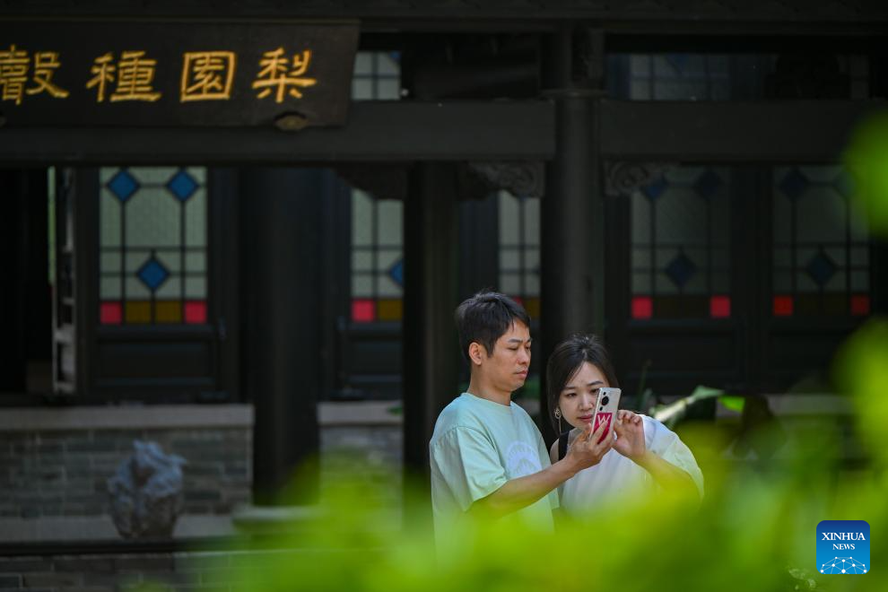 Tourists take a photo in the Yongqing Block, Guangzhou, south China's Guangdong Province, May 13, 2025. (Xinhua/Chen Shuo)