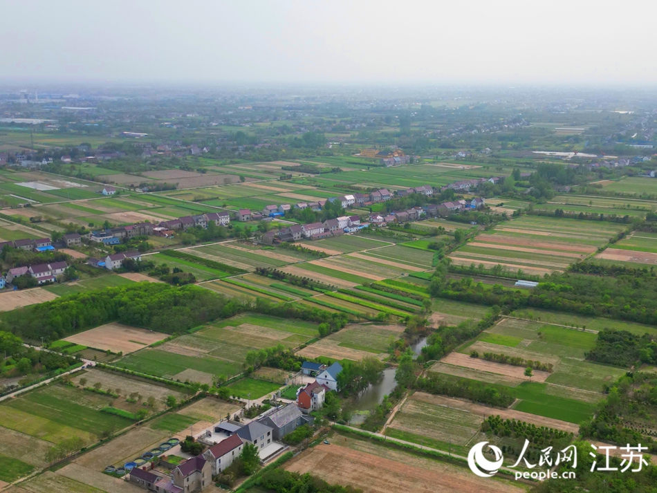 Photo shows an aerial view of turf planting bases in Qianchang village, Rugao, a county-level city in Nantong, east China's Jiangsu Province. (People's Daily Online/Wang Jiliang)