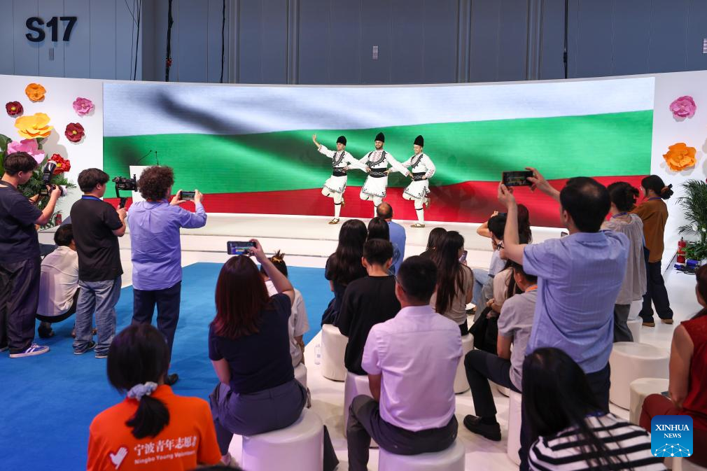 Visitors enjoy performance from Bulgaria during the 4th China-CEEC Expo & International Consumer Goods Fair in Ningbo, east China's Zhejiang Province, May 22, 2025. With over 8,000 featured products on display, from traditional goods like wines and cheese to cutting-edge varieties like VR glasses, the 4th China-CEEC Expo & International Consumer Goods Fair unveiled its curtain on Thursday, unleashing vast cooperation potential between China and Central and Eastern European Countries (CEEC). The expo, running from Thursday to Sunday in Ningbo, has attracted 435 enterprises from 14 CEEC countries and nine other countries, including the UK, France, Germany and Italy. (Xinhua/Jiang Han)