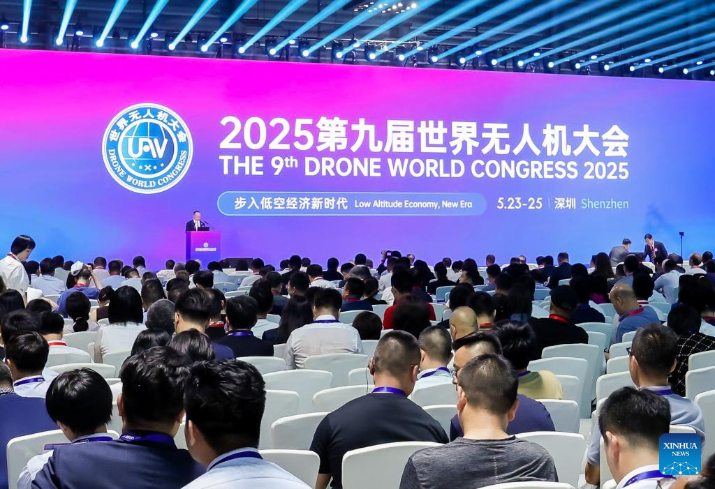 Guests attend the 9th Drone World Congress 2025 in Shenzhen, south China's Guangdong Province, May 23, 2025. The 9th Drone World Congress 2025, International Low Altitude Economy and UAS Expo 2025 and the 10th Shenzhen International UAV Expo kicked off on Friday. Over 800 companies with more than 5,000 drone products participated in the expo. (Xinhua)