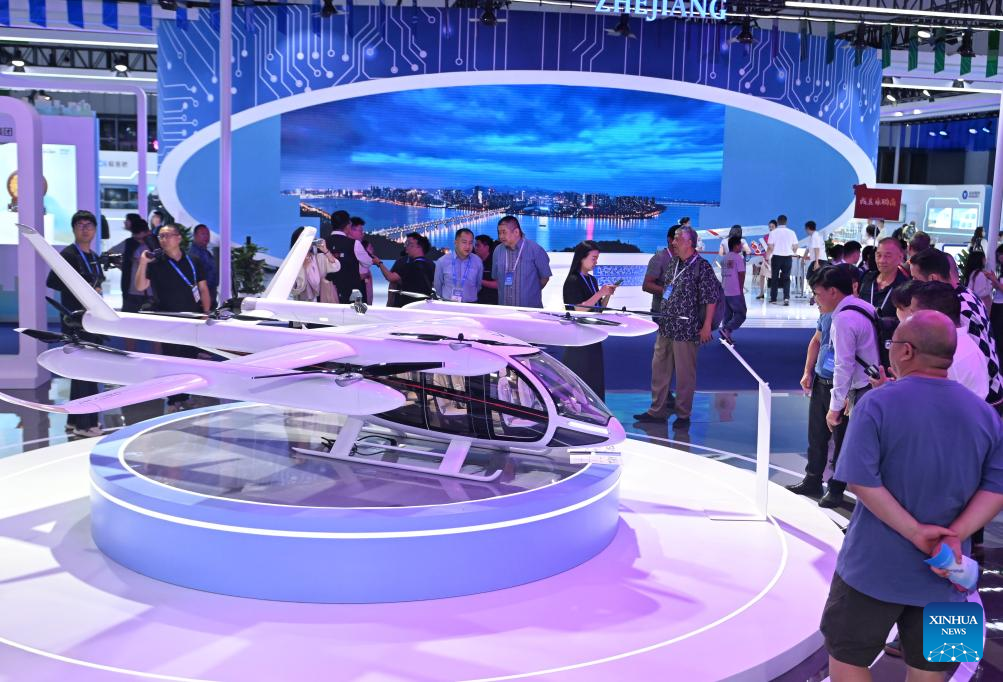 People view an aircraft model at the pavilion of Sichuan Province at the 20th Western China International Fair in Chengdu, southwest China's Sichuan Province, May 25, 2025. The fair opened in Chengdu on Sunday under the theme of "Deepen Reform For More Momentum, Expand Openness for Greater Growth." The fair, which is hosted by the People's Government of Sichuan Province, has attracted over 3,000 enterprises from home and abroad, and will last until May 29. Hungary and Laos serve as the guest countries of honor at the fair, while east China's Zhejiang Province and northwest China's Qinghai Province act as the guest provinces of honor. (Xinhua/Liu Kun)