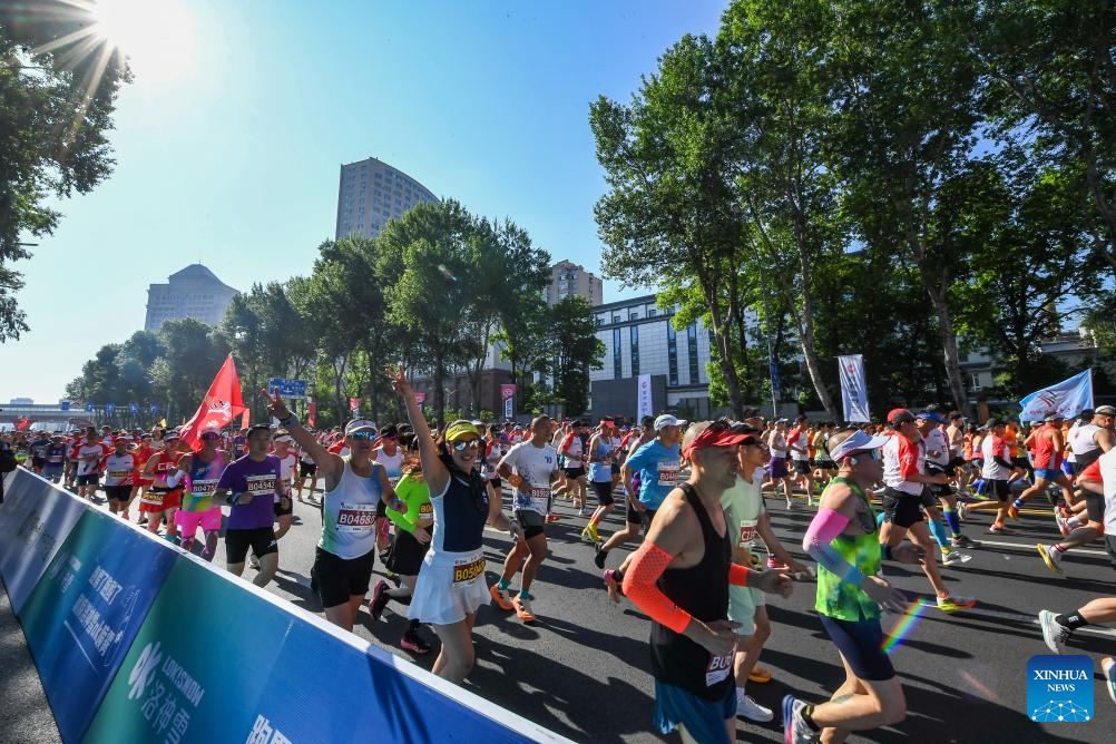 Runners start during the 2025 Hongqi Changchun Marathon in Changchun, northeast China's Jilin Province, on May 25, 2025. (Xinhua/Zhang Nan)