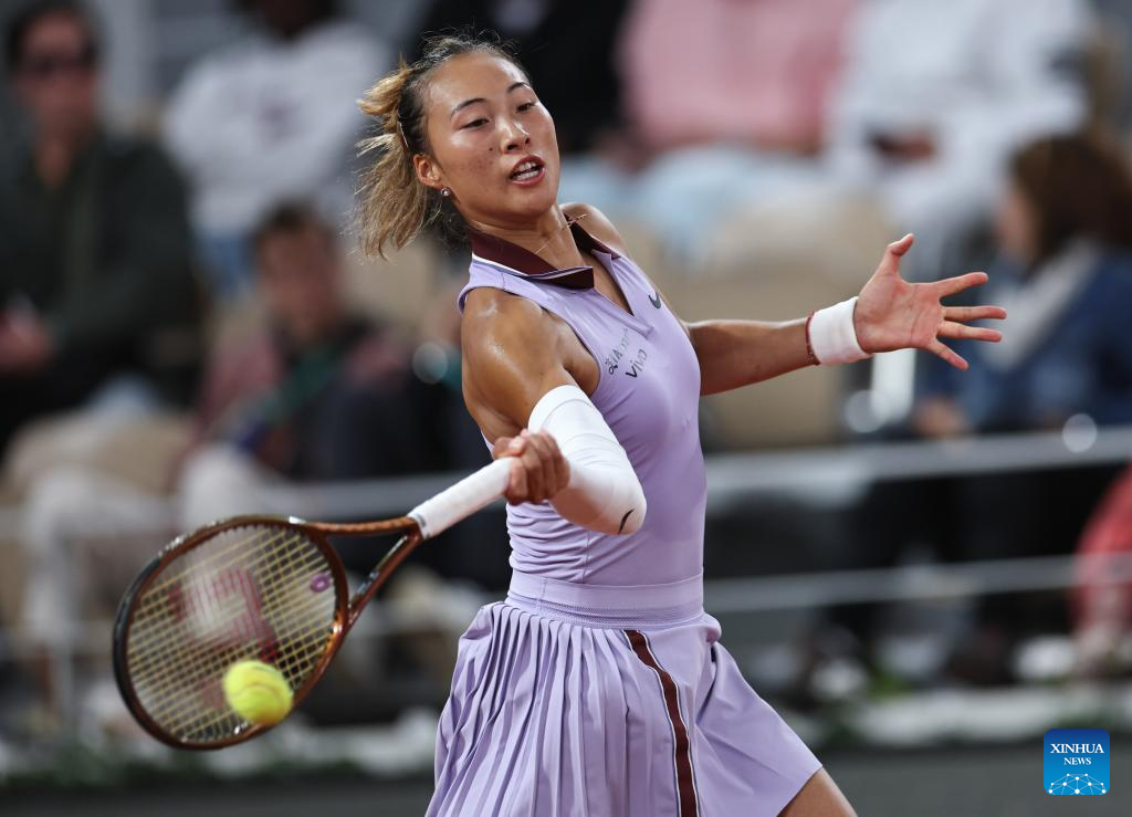 PARIS, May 25 (Xinhua) -- Olympic champion Zheng Qinwen of China defeated former French Open finalist Anastasia Pavlyuchenkova 6-4, 6-3 in the first round of the French Open on Sunday.