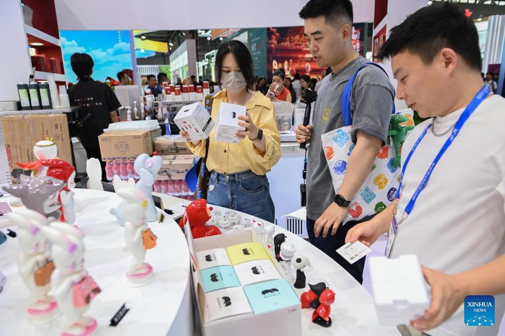 Visitors purchase products at the 21st China (Shenzhen) International Cultural Industries Fair in Shenzhen, south China's Guangdong Province, May 23, 2025. (Xinhua/Liang Xu)