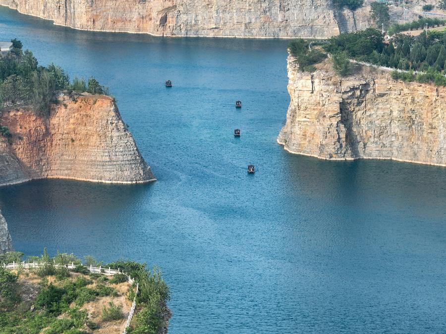 In the scenic area, an abandoned mining ravine has been transformed, featuring masterpieces of Chinese calligraphy from successive dynasties carved into its towering cliff walls on both sides. A preserved mining village and pit relics remind visitors of the importance of ecological conservation. At a rehabilitated mining site, audiences can now watch an immersive live performance aboard a giant ship, with the actual mountains, water and sky forming a breathtaking natural backdrop.