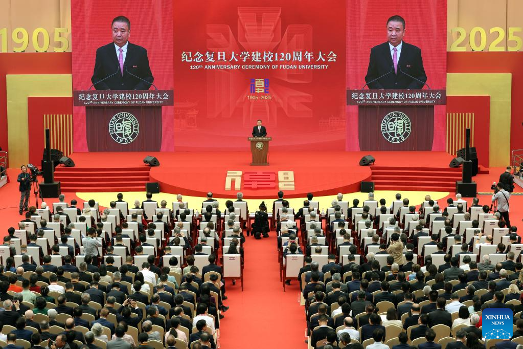 The 120th anniversary ceremony of Fudan University is held in Shanghai, east China, May 27, 2025. Founded in 1905, Fudan University is a comprehensive, research-oriented university based in Shanghai. (Xinhua/Liu Ying)