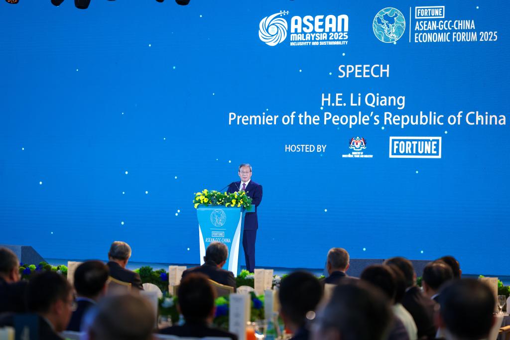 Chinese Premier Li Qiang addresses the opening ceremony of the ASEAN (the Association of Southeast Asian Nations)-China-GCC (the Gulf Cooperation Council) Economic Forum 2025 in Kuala Lumpur, Malaysia, May 27, 2025. Malaysian Prime Minister Anwar Ibrahim and Vietnamese Prime Minister Pham Minh Chinh also attended the event. (Xinhua/Li Xiang)