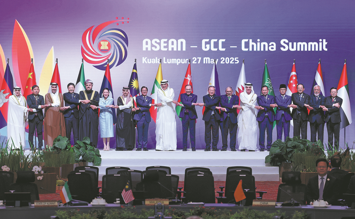 Premier Li Qiang and foreign heads of state, heads of government and representatives of the Association of Southeast Asian Nations and the Gulf Cooperation Council attend the ASEAN-GCC-China Summit in Kuala Lumpur, Malaysia, on Tuesday. (Wang Zhuangfei/China Daily)