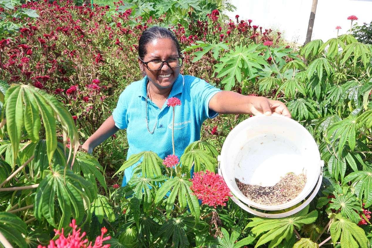 Salina poses for a picture with seeds she collected from an experimental field at the China-aided Suriname Agricultural Technical Cooperation Center. (Photo/Ernesto Domínguez)