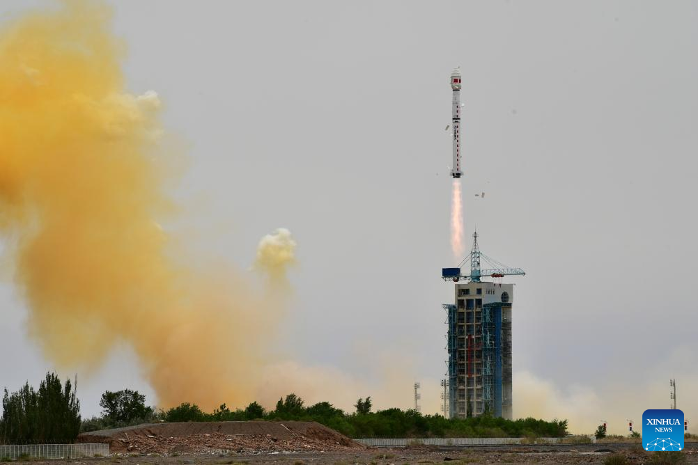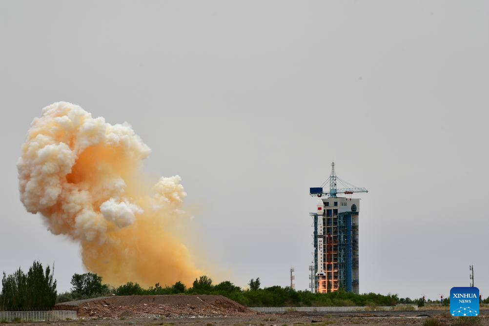 A Long March-4B carrier rocket carrying a new satellite, Shijian-26, blasts off from the Jiuquan Satellite Launch Center in northwest China on May 29, 2025. The satellite entered the preset orbit successfully. (Photo by Wang Jiangbo/Xinhua)