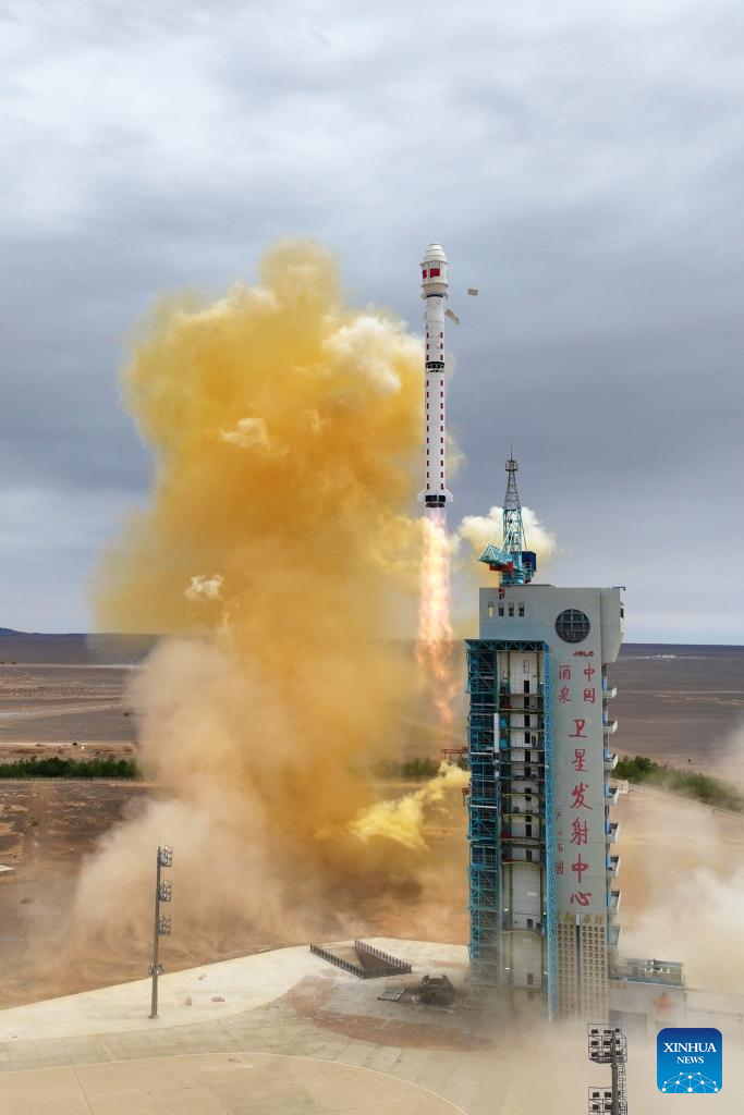 The rocket blasted off at 12:12 p.m. (Beijing Time) from the Jiuquan Satellite Launch Center in northwest China.