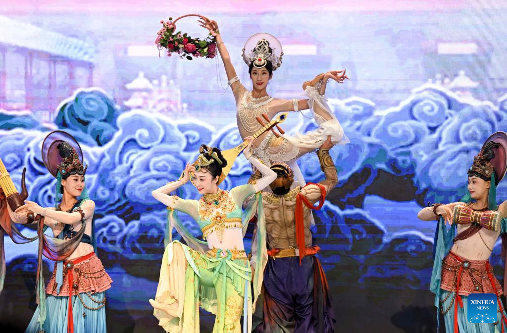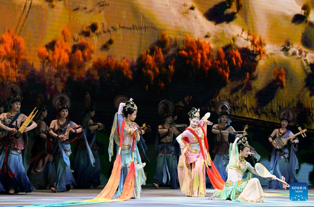 Actors give a performance on the theme of Dunhuang culture at the opening ceremony of the fourth Dialogue on Exchanges and Mutual Learning among Civilizations in Dunhuang, northwest China's Gansu Province, May 30, 2025. The fourth Dialogue on Exchanges and Mutual Learning among Civilizations kicked off here on Friday. About 400 people attended the meeting, including political leaders, scholars, and heads of international organizations and non-governmental organizations from multiple countries. (Xinhua/Zhang Ling)