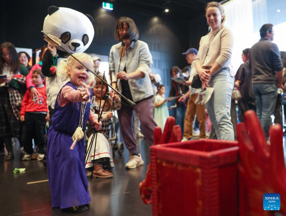 Children enjoy touhu, a traditional Chinese game also known as pitch-pot, during an event celebrating the traditional Chinese Dragon Boat Festival in Christchurch, New Zealand, May 30, 2025. Communities across New Zealand marked the traditional Chinese Dragon Boat Festival over the weekend with vibrant celebrations in both Christchurch and Auckland, reflecting the enduring cultural heritage of this ancient festival. (Xinhua/Long Lei)
