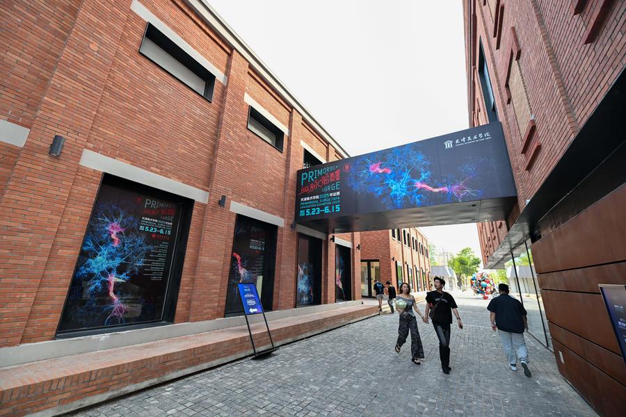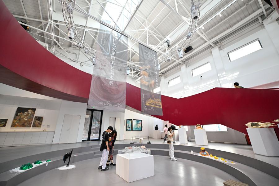 People visit a renovated exhibition area at Tianjin Academy of Fine Arts area in north China's Tianjin on June 2, 2025. (Xinhua/Sun Fanyue)