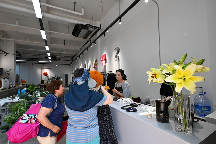 Citizens shop in a commercial block transformed from old factories in Tianjin Tractor Factory area, north China's Tianjin, May 30, 2025. (Xinhua/Sun Fanyue)