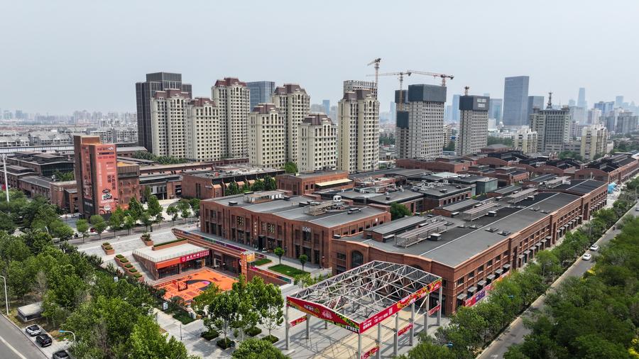 An aerial drone photo taken on May 29, 2025 shows the construction site of an urban renewal project at Nanmenwai Street business district in north China's Tianjin. (Xinhua/Sun Fanyue)