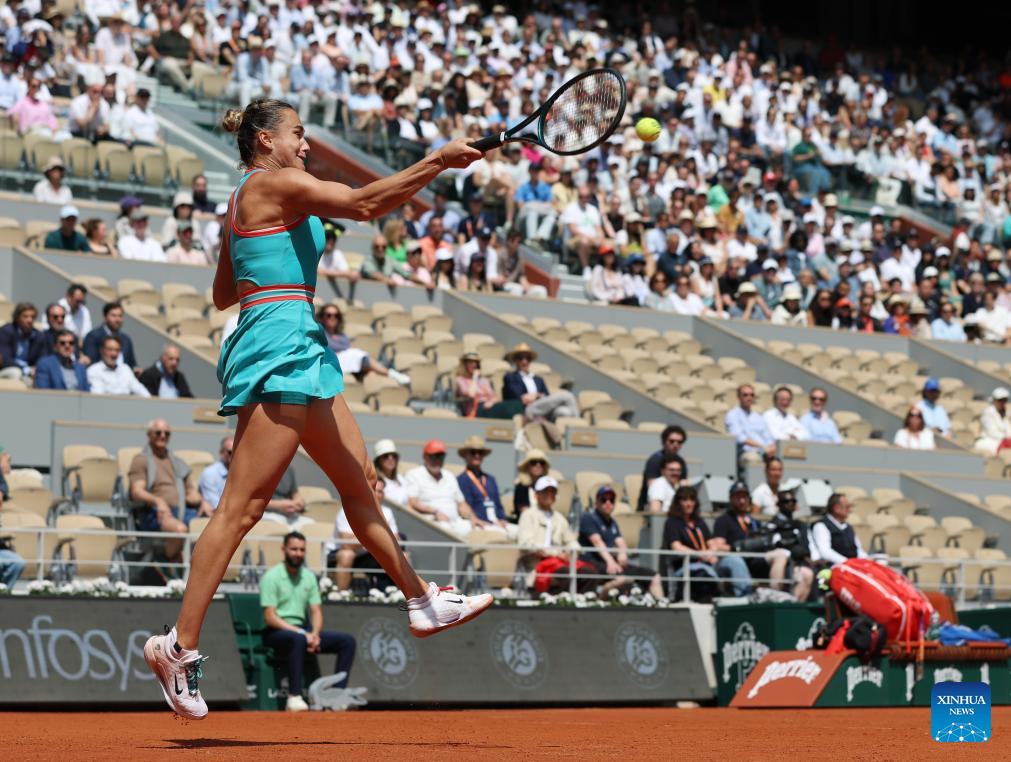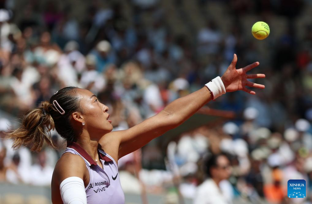 PARIS, June 3 (Xinhua) -- Chinese Zheng Qinwen lost to world No.1 Aryna Sabalenka of Belarus 7-6 (3), 6-3 in the women's singles quarterfinals at the French Open on Tuesday.