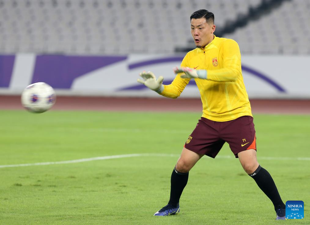 Goalkeeper Wang Dalei of China attends a training session in Jakarta, Indonesia, June 4, 2025, one day ahead of the 2026 FIFA World Cup Asian Qualifiers Group C match between China and Indonesia. (Xinhua/Cen Yunpeng)