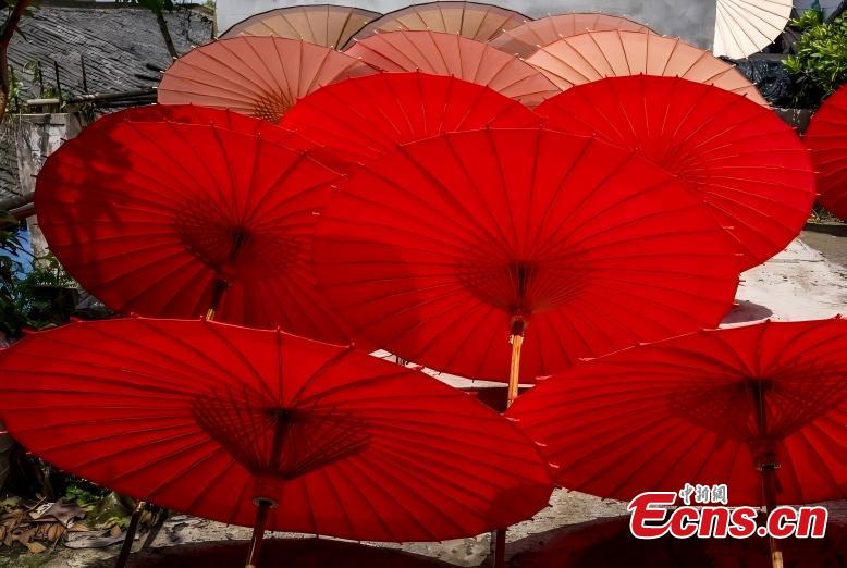 Photo shows oil-paper umbrellas in Fenshuiling Town of Luzhou City, southwest China's Sichuan Province. (Photo/China News Service)