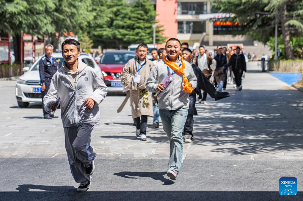 Students walk out of a national college entrance examination site in Lhasa, southwest China's Xizang Autonomous Region, June 9, 2025. China's national college entrance exam, also known as the gaokao, began on June 7 this year. The exam in some regions has ended on Monday. (Xinhua/Tenzin Nyida)