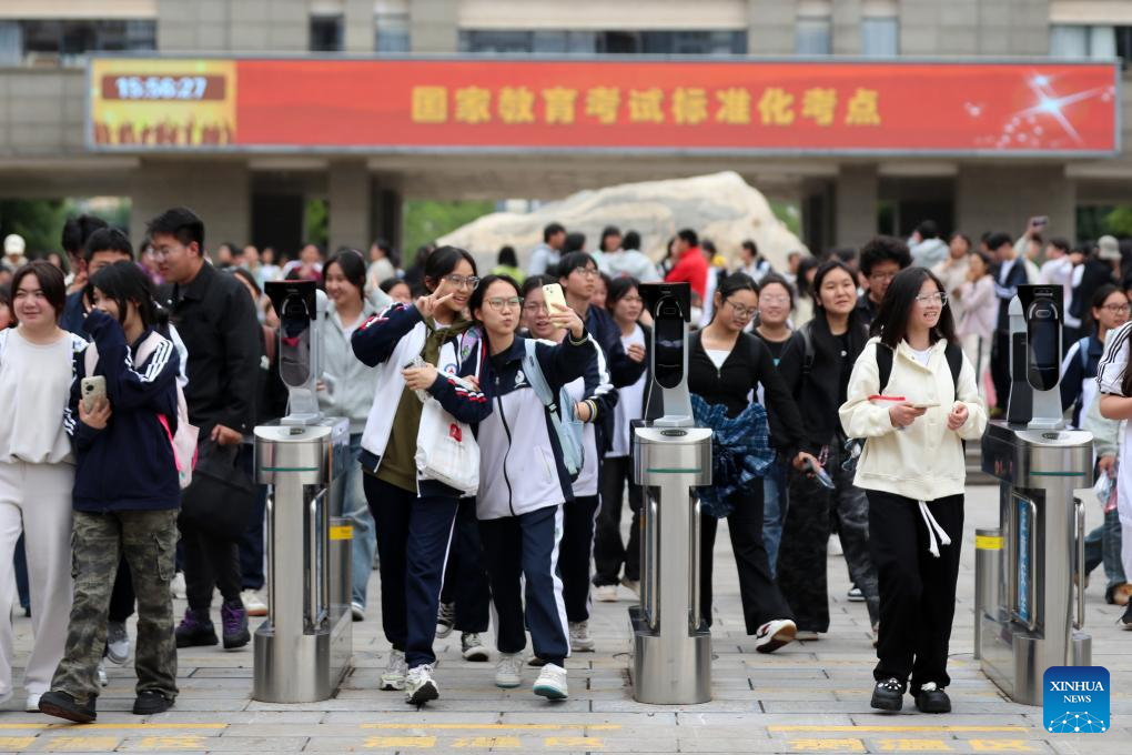 Students walk out a national college entrance examination site in Xinghua City, east China's Jiangsu Province, June 9, 2025. China's national college entrance exam, also known as the gaokao, began on June 7 this year. The exam in some regions has ended on Monday. (Photo by Zhou Shegen/Xinhua)