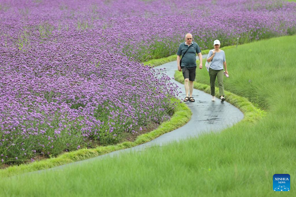 Tourists enjoy flowers at a park in Jiaxing, east China's Zhejiang Province, June 8, 2025. (Photo by Jin Peng/Xinhua)