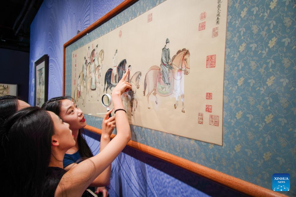 Hair embroidery artworks are displayed at the Dongtai Museum in Dongtai City, Yancheng of east China's Jiangsu Province, June 6, 2025. (Xinhua/Xue Yuge)