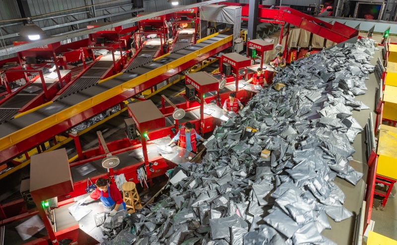 An automated parcel-sorting line runs at full capacity in Tianmen city, central China's Hubei Province, dispatching over 200,000 pieces of garments across the country. (Photo/Xu Lei)