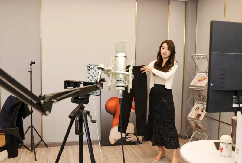 A livestreamer promotes garments via livestreaming in Tianmen city, central China's Hubei Province. (Photo courtesy of the Publicity Department of the Communist Party of China Tianmen Municipal Committee)