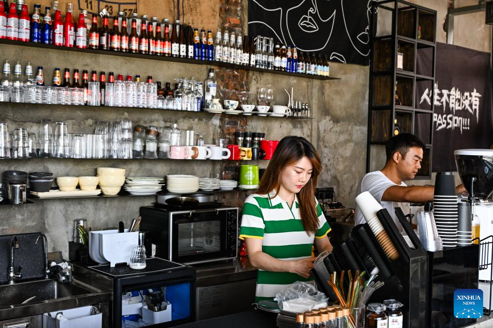 Staff members make drinks at a beverage shop in Wushan County, southwest China's Chongqing Municipality, June 11, 2025. In recent years, Wushan, Fengjie, and other areas in the Three Gorges Reservoir region in Chongqing have adhered to the principle of green development. While consolidating the ecological strength in the upper reaches of the Yangtze River, local authorities have fully leveraged the unique terrain, magnificent landscapes, and rich historical and cultural heritage to promote the development of cultural tourism, effectively boosting local economic and social development. (Xinhua/Wang Quanchao)