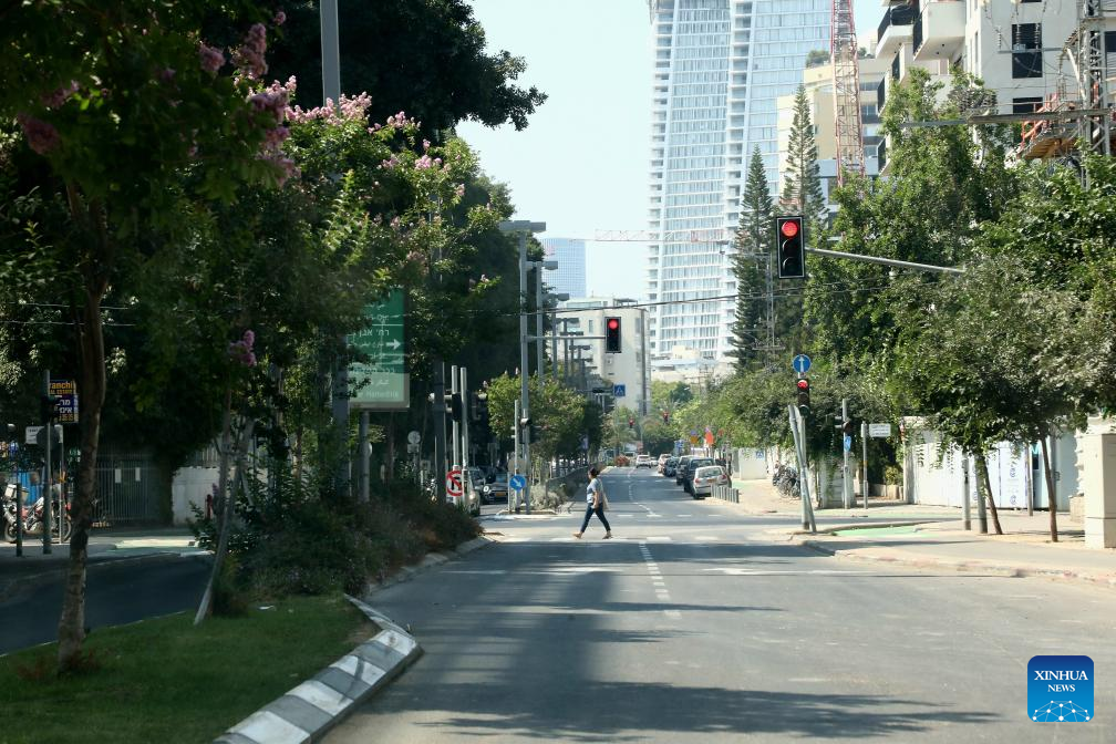 This photo taken on June 13, 2025 shows an empty street in Tel Aviv, Israel. The Israel Defense Forces (IDF) confirmed early Friday in a statement that it had launched a "preemptive, precise, combined" attack on dozens of military targets, including nuclear targets in different areas of Iran, adding, "Iran is closer than ever to obtaining a nuclear weapon."