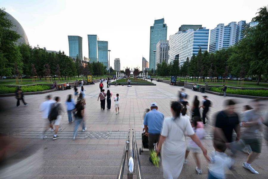 People walk in downtown Astana, Kazakhstan, June 11, 2025. (Xinhua/Li Renzi)