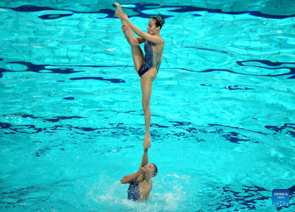 Twin sisters Lin Yanjun and Lin Yanhan won the duet free in 266.1442 points with powerful movements. Spain's duo Lilou Lluis and Iris Tio came second with 260.9325, while the bronze went to newly paired Japanese duo Uta Kobayashi and Tomoka Sato.