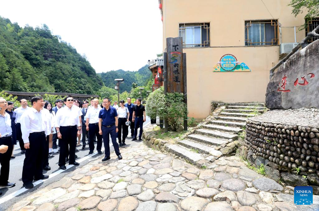 Ma Ying-jeou, former chairman of the Chinese Kuomintang party, and members of a delegation of Taiwan youth visit Xiadang Township of Shouning County in Ningde, southeast China's Fujian Province, June 17, 2025. Ma led a delegation of Taiwan youth on a visit to Ningde on Tuesday. (Xinhua)