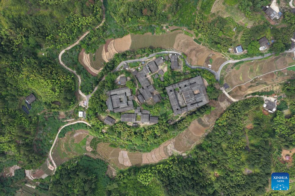 An aerial drone photo taken on May 20, 2025 shows Beishan Manor in Yongtai County, southeast China's Fujian Province. Nestled in the Daiyun Mountain like scattered pearls, over 2,000 fortified manors in Yongtai County trace their origins to the Tang Dynasty (618-907 AD), flourishing later during the Ming (1368-1644) and Qing (1644-1911) eras.