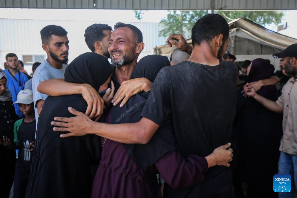 Palestinians mourn for victims killed by an Israeli airstrike inside Al-Shifa Hospital in central Gaza City, on June 20, 2025. (Photo by Rizek Abdeljawad/Xinhua)
