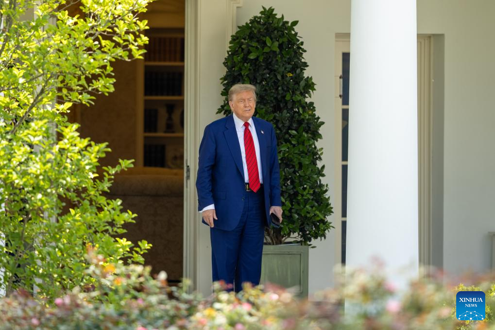 U.S. President Donald Trump looks at the Rose Garden at the White House in Washington, D.C., the United States, on June 20, 2025. Trump said Friday it will be difficult to request Israel stop its airstrikes in Iran, even as he pursues a diplomatic solution to end the conflict. (Xinhua/Hu Yousong)