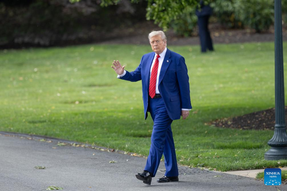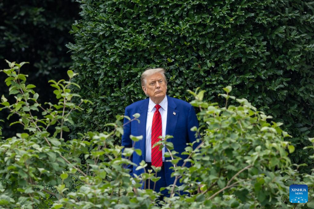 U.S. President Donald Trump walks toward the South Lawn to board Marine One at the White House in Washington, D.C., the United States, on June 20, 2025. Trump said Friday it will be difficult to request Israel stop its airstrikes in Iran, even as he pursues a diplomatic solution to end the conflict. (Xinhua/Hu Yousong)