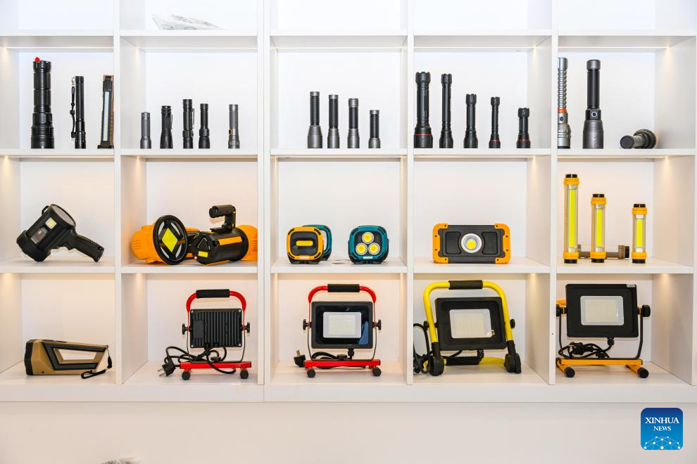 This photo taken in May 2024 shows products displayed at a product showroom of Ningbo Xiesheng Lighting Co., Ltd. in Ningbo, east China's Zhejiang Province. (Xinhua)