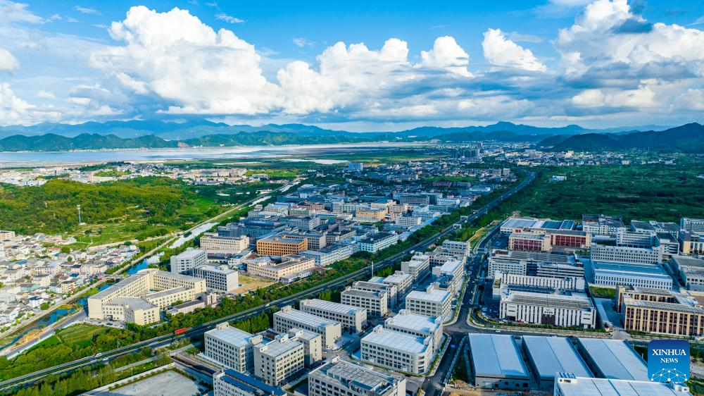 An aerial drone photo taken in 2024 shows a view of Xidian Town in Ninghai County of Ningbo, east China's Zhejiang Province. (Xinhua)