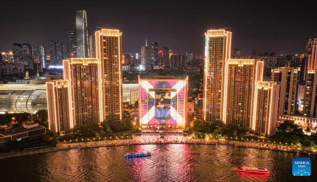 The 2025 Summer Davos forum will be held here from June 24 to 26. Many landmark buildings in the city are illuminated against the curtain of night, presenting a dazzling array of colors to welcome guests from home and abroad. (Xinhua/Sun Fanyue)
