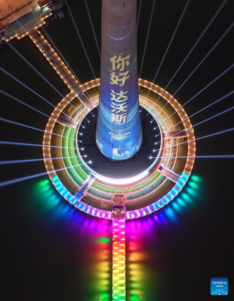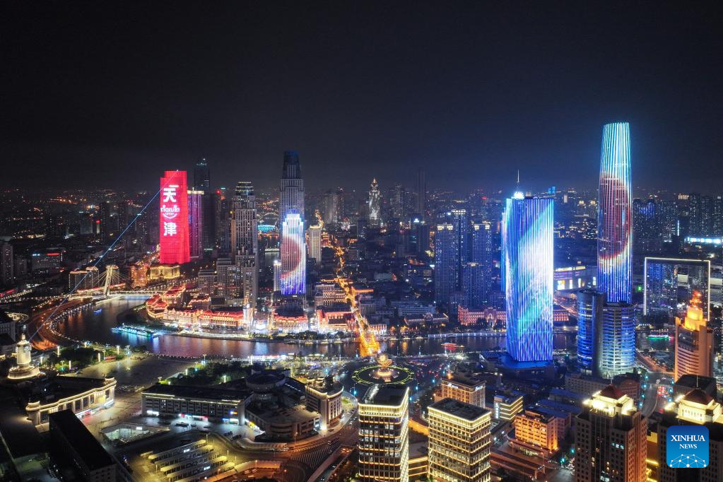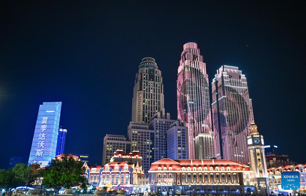 Tianjin's landmarks illuminated at night to welcome guests for 2025 Summer Davos forum
