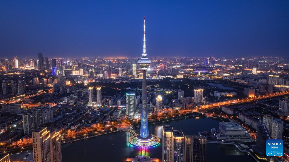 This photo taken on June 20, 2025 shows a city view at night in north China's Tianjin Municipality.