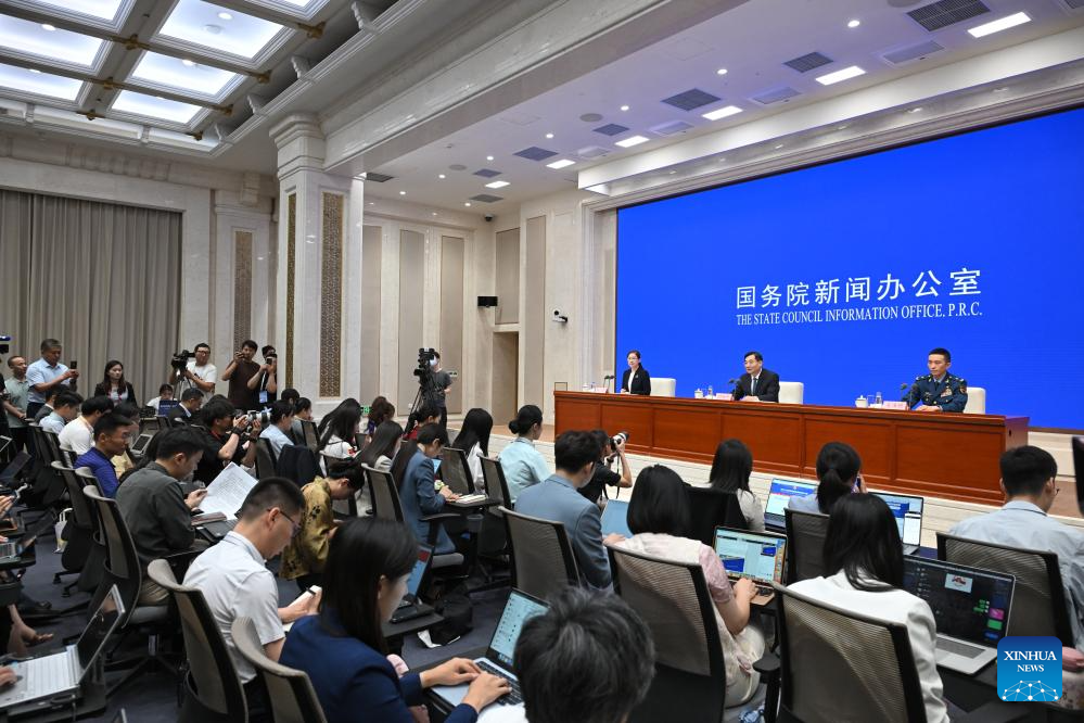 China's State Council Information Office holds a press conference on plans for marking the 80th anniversary of the victory in the Chinese People's War of Resistance Against Japanese Aggression and the World Anti-Fascist War, in Beijing, capital of China, June 24, 2025. Hu Heping, executive vice minister of the Publicity Department of the Communist Party of China Central Committee, and Major General Wu Zeke, deputy director of the Leading Group Office of Military Parade and deputy director general of the Operation Bureau of the Joint Staff Department of the Central Military Commission, briefed the media on the arrangement of commemorative activities and took questions. (Xinhua/Jin Liangkuai)